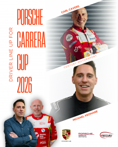 Century Motorsport is proud to confirm an experienced and competitive driver lineup for the 2026 Porsche Carrera Cup Great Britain, featuring returning Masters Class race winner Carl Cavers alongside Irish racing veteran Michael Keohane. Combining proven race winning pace, technical expertise, and championship experience, the duo strengthens Century Motorsport’s campaign as the team targets success in the Masters category in one of the UK’s most competitive single make championships.